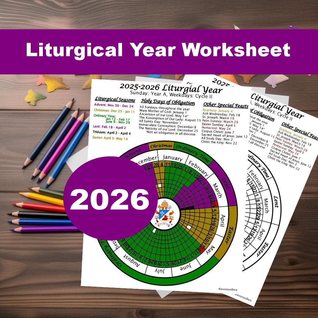 Printable 2026 Liturgical Calendar Downloadable Catholic Worksheet Etsy