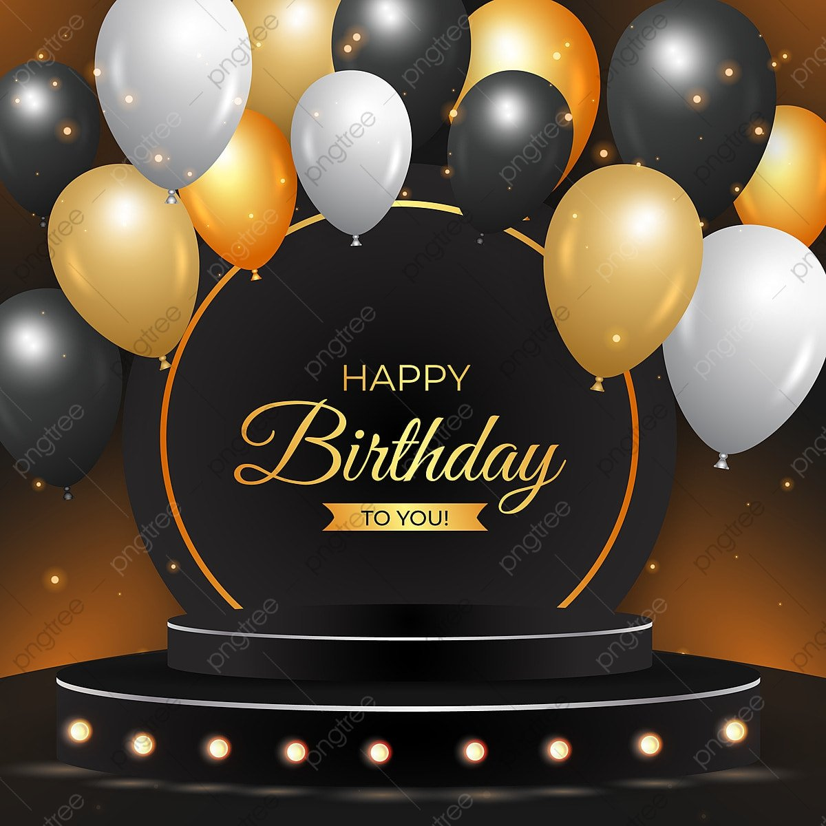 Birthday Card With 3d Podium And Realistic Balloons Confetti For