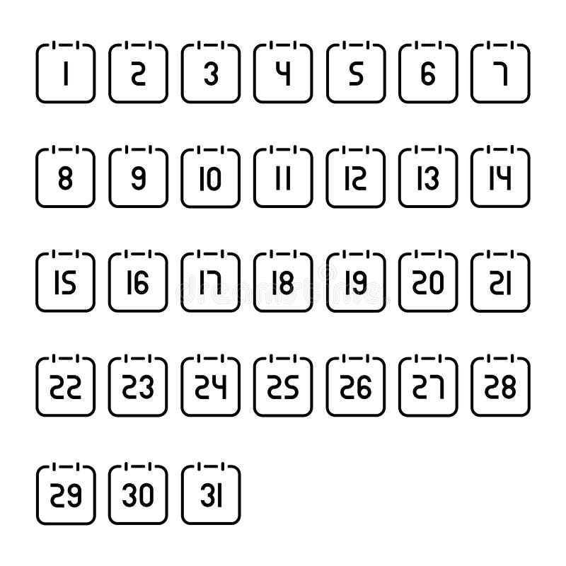 Calendar Number 1 31 Flat Icon On White Background Stock Vector Illustration Of Element Symbol 176787099