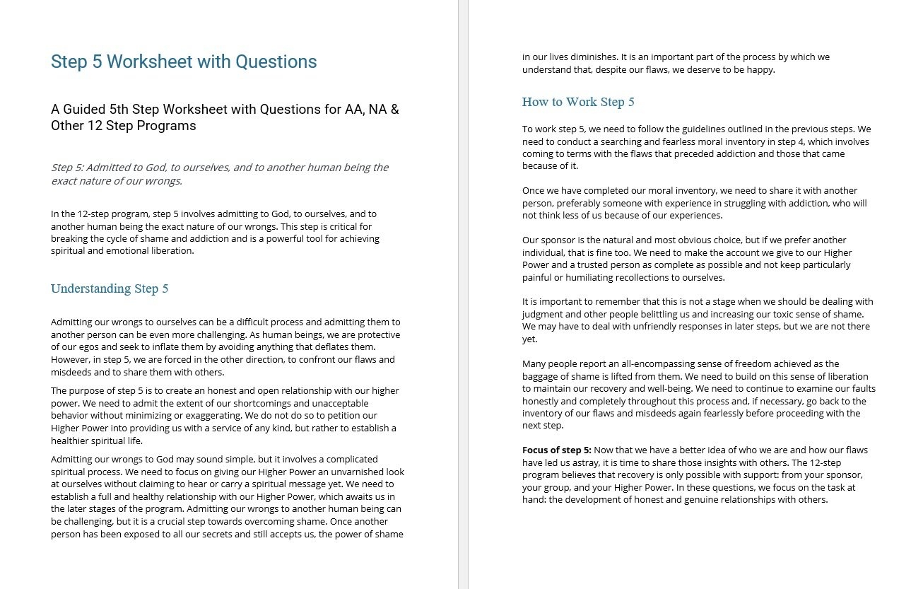 Fourth Step Inventory Worksheet AA 12 Step Printable PDF 4th Step Inventory Alcoholics Anonymous Narcotics Anonymous Step 4 Big Book Etsy