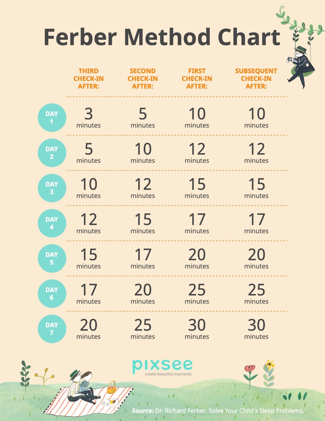 If you’re interested in trying the Ferber Method with your little one, having a printable chart can be a helpful tool to track your progress. You can easily find printable Ferber Method charts online that outline the recommended intervals for comforting your baby during sleep training.