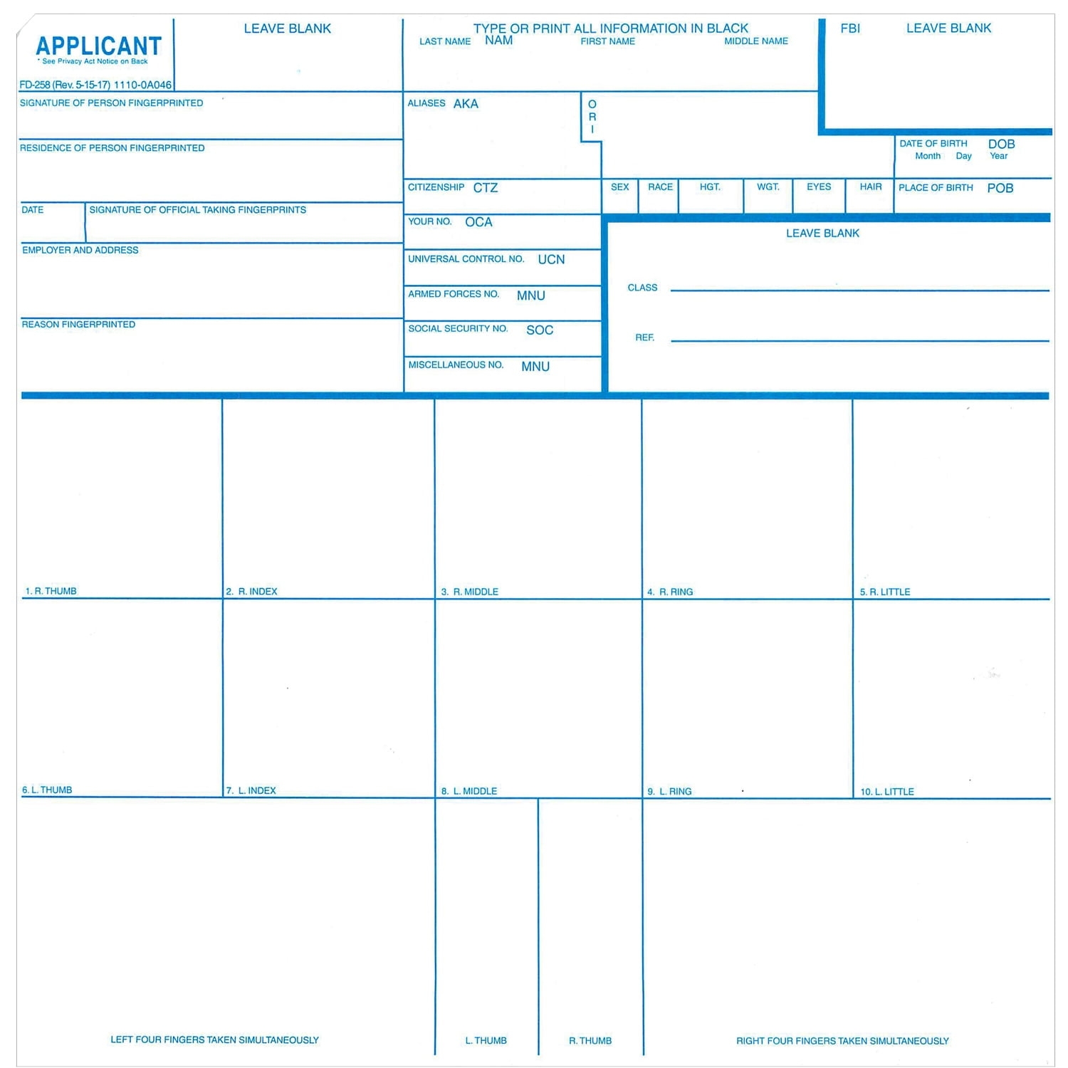 FBI Standard FD 258 Fingerprint Cards For Employment And Immigration 250 Pack Walmart
