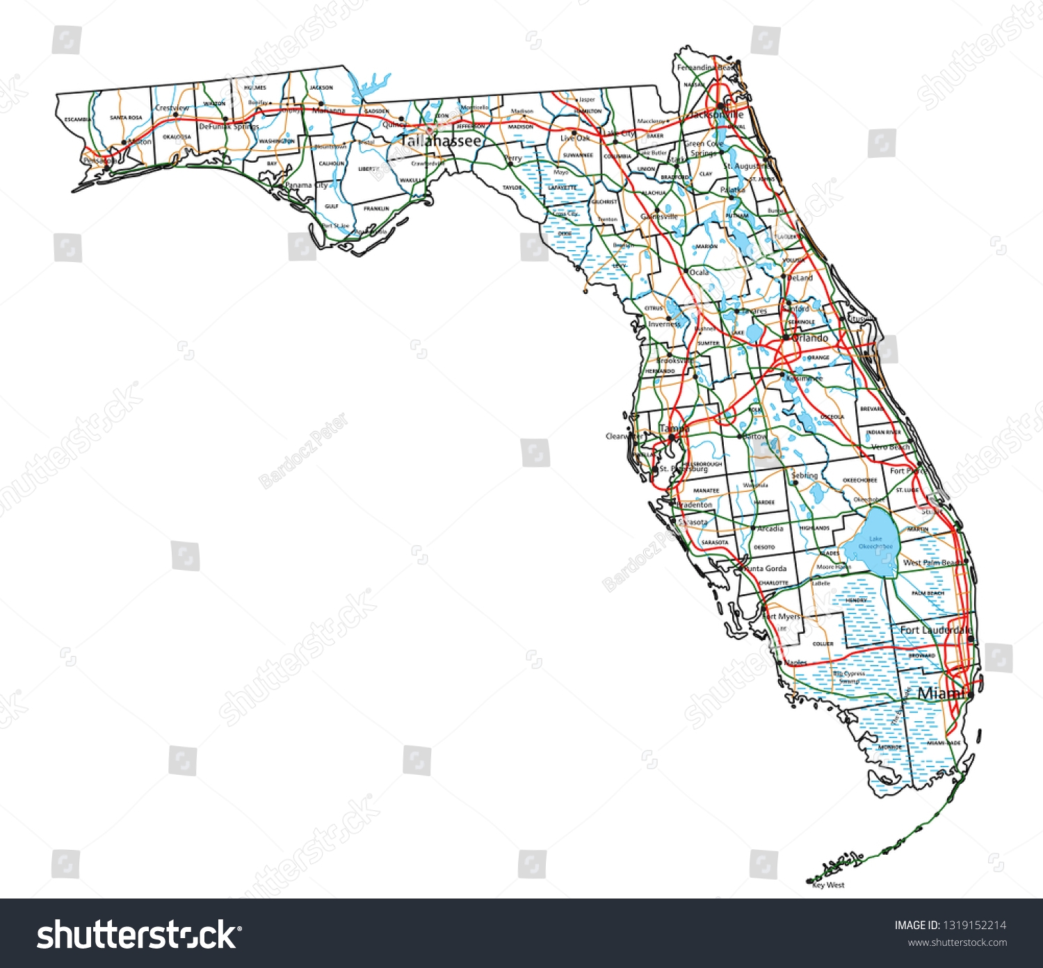 Road Map Of The US American State Of Florida Stock Vector Image Art Alamy
