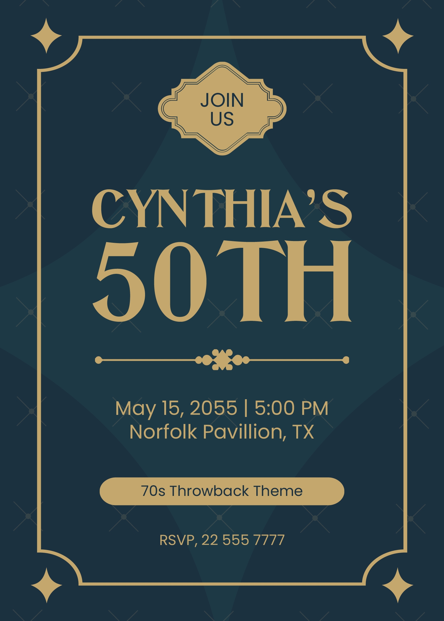 Don’t stress about creating the perfect invitations from scratch. Our free 50th birthday invitations printable templates make it easy to send out stylish invites without breaking a sweat. Download your favorite template, personalize it, and get ready to party like it’s 1969!