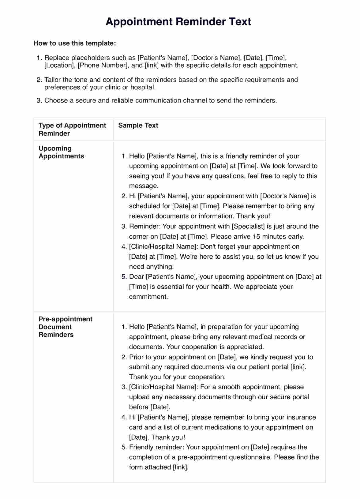 Appointment Reminder Template U0026 Example Free PDF Download