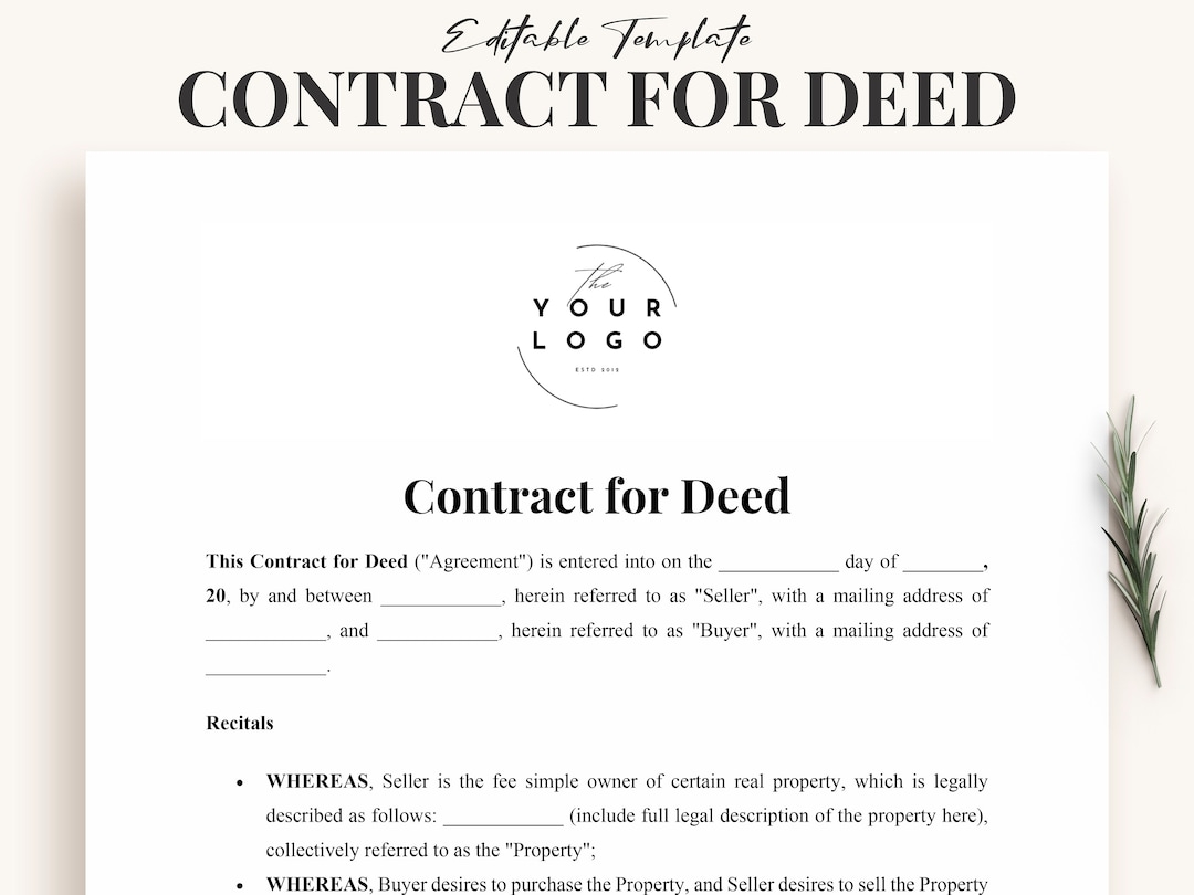 Contract For Deed Template Customizable Contract For Home Purchase Plan Property Payment Agreement Template For Buyers And Sellers Etsy