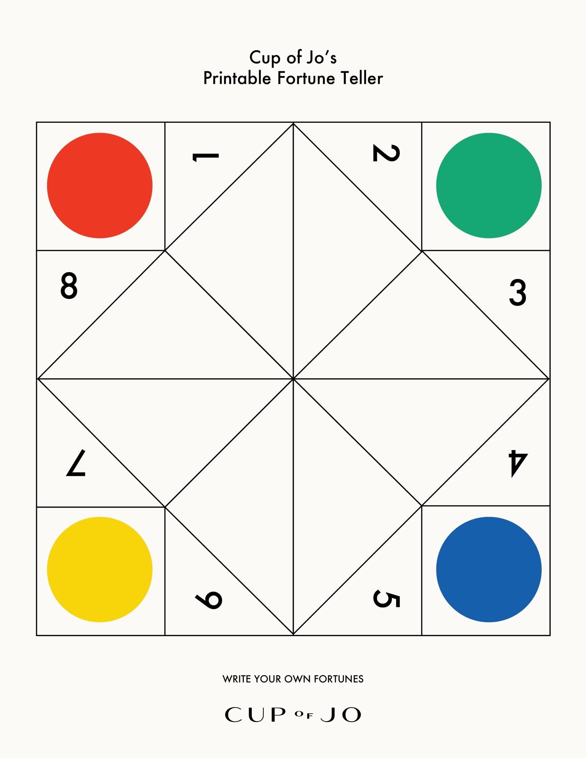 Simply download the template, print it out on a sheet of paper, and follow the easy instructions to fold it into shape. You can customize the fortunes inside, so whether you want to predict your future or just have a good laugh, the possibilities are endless!