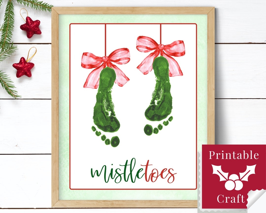 Mistletoes Printable Handmade Christmas Gift Baby Or Toddler Footprint Art Print Keepsake Craft Template Etsy