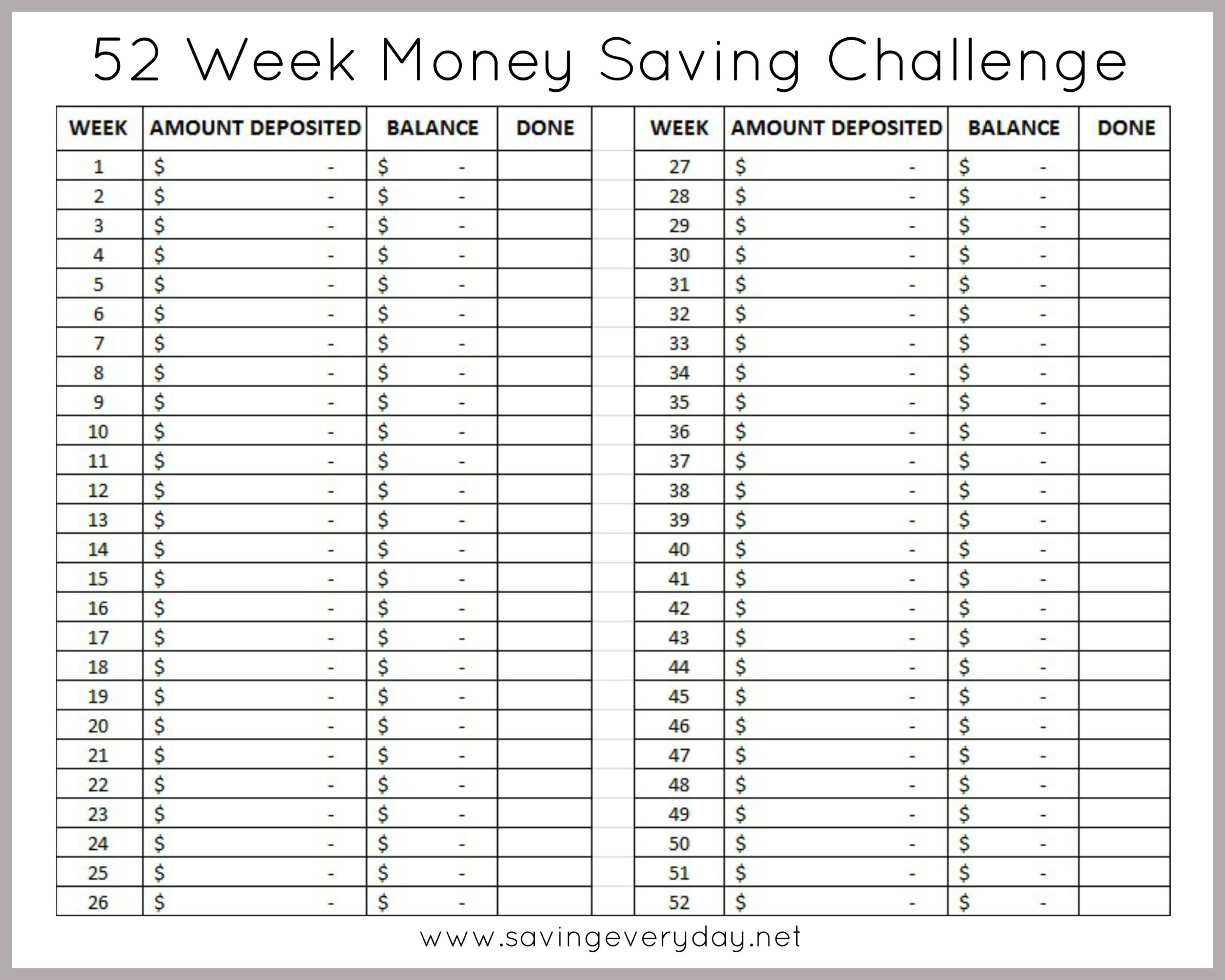 52 Week Money Saving Challenge Printable Sheet Worksheets Library