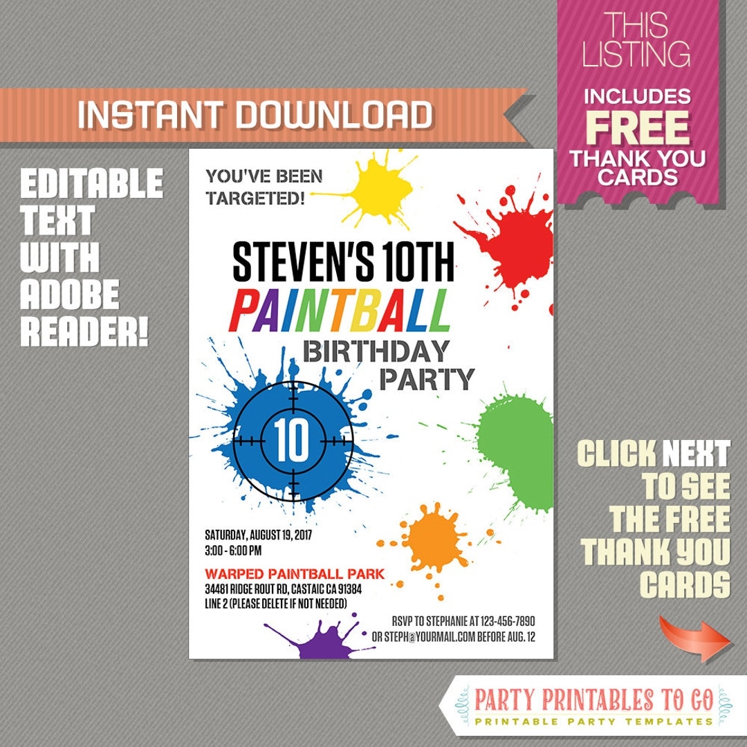 Paint Ball Invitation With FREE Thank You Card Paintball Party Instant Download Edit And Print At Home With Adobe Reader Etsy