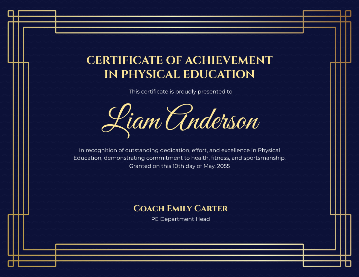 Physical Education Certificate PE Certificate Editable PE