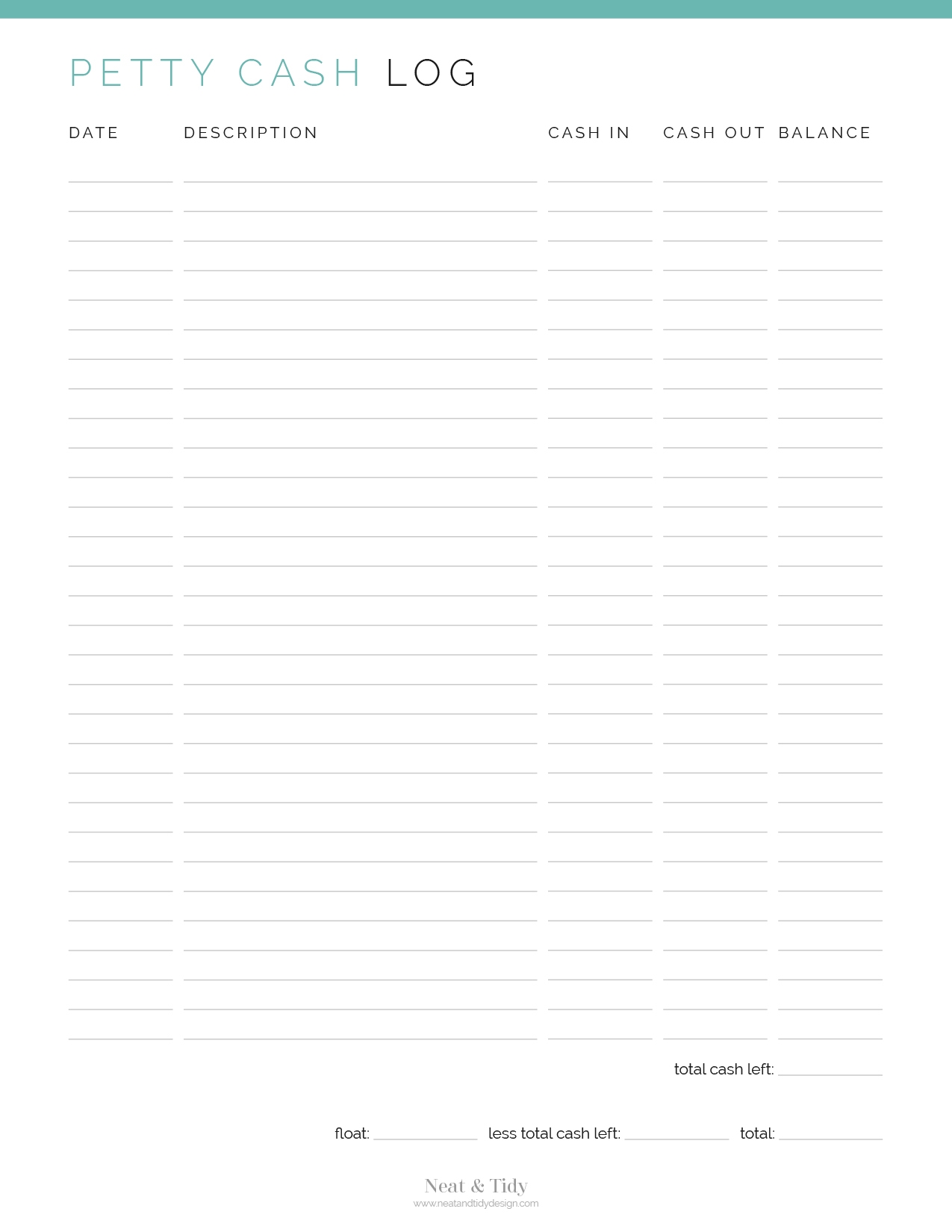 Petty Cash Log Printable And Fillable PDF Template Etsy