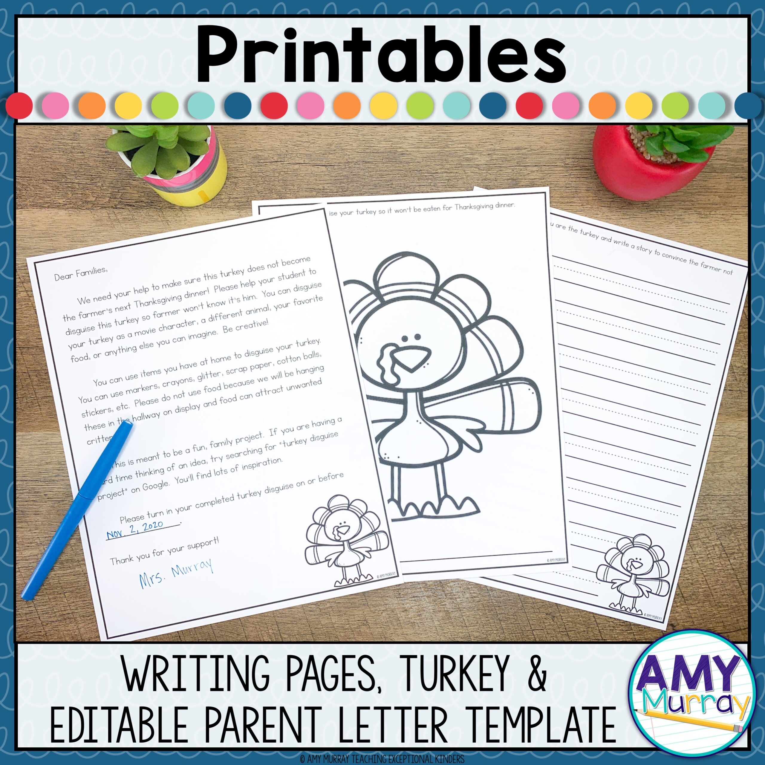 FREE Turkey In Disguise Project Template