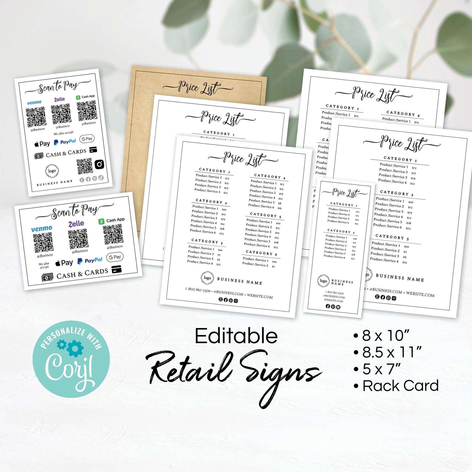 Price List Template Point Of Sale Signs Small Business Editable Price Sheet Printable Retail Salon Sign For Farmer s Market Craft Show Etsy