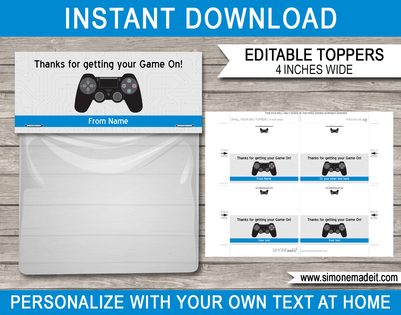 Playstation Birthday Party Favor Bag Toppers Video Game Theme