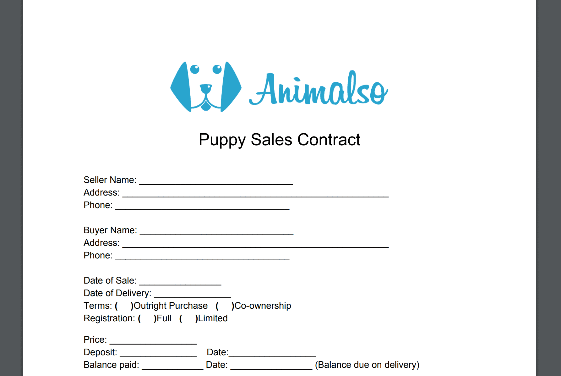 Puppy Sale Contract Template Word Printable Blank Puppy Contract Templates Breeder Puppy Adoption Puppy Buying Agreement Template PDF Etsy