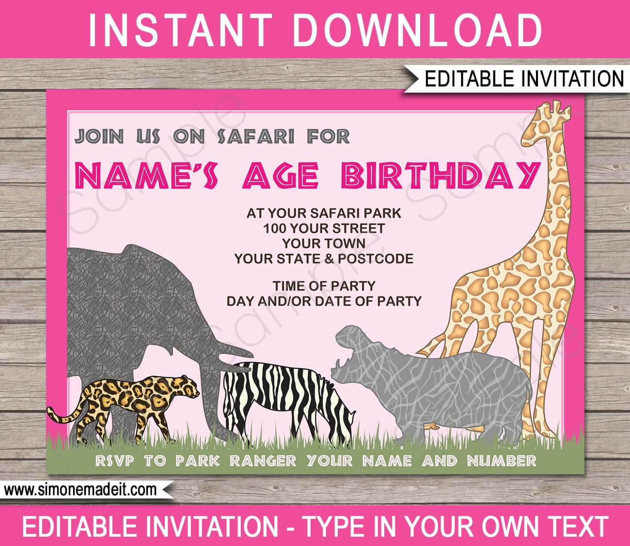 Safari Party Invitations Template Pink