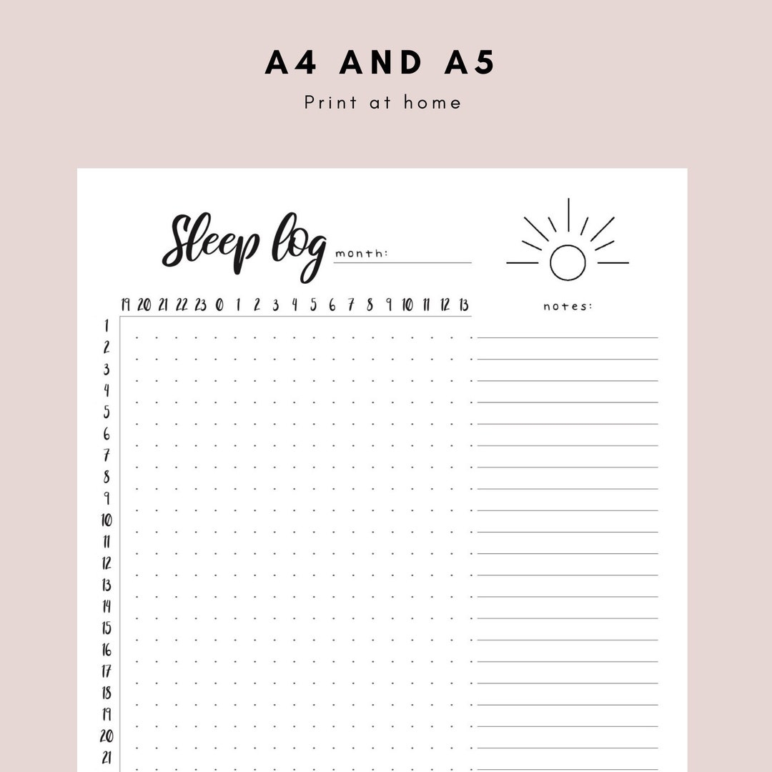 Minimalist Printable Sleep Log Tracker A4 U0026 A5 Sleep Journal PDF Monthly Sleep Habit Tracker Digital Download Etsy