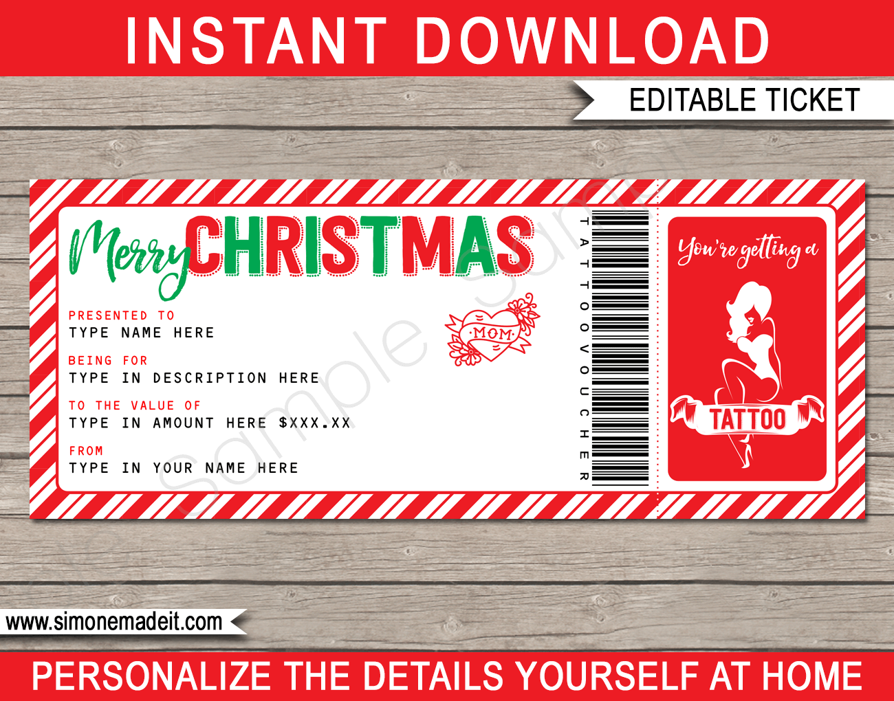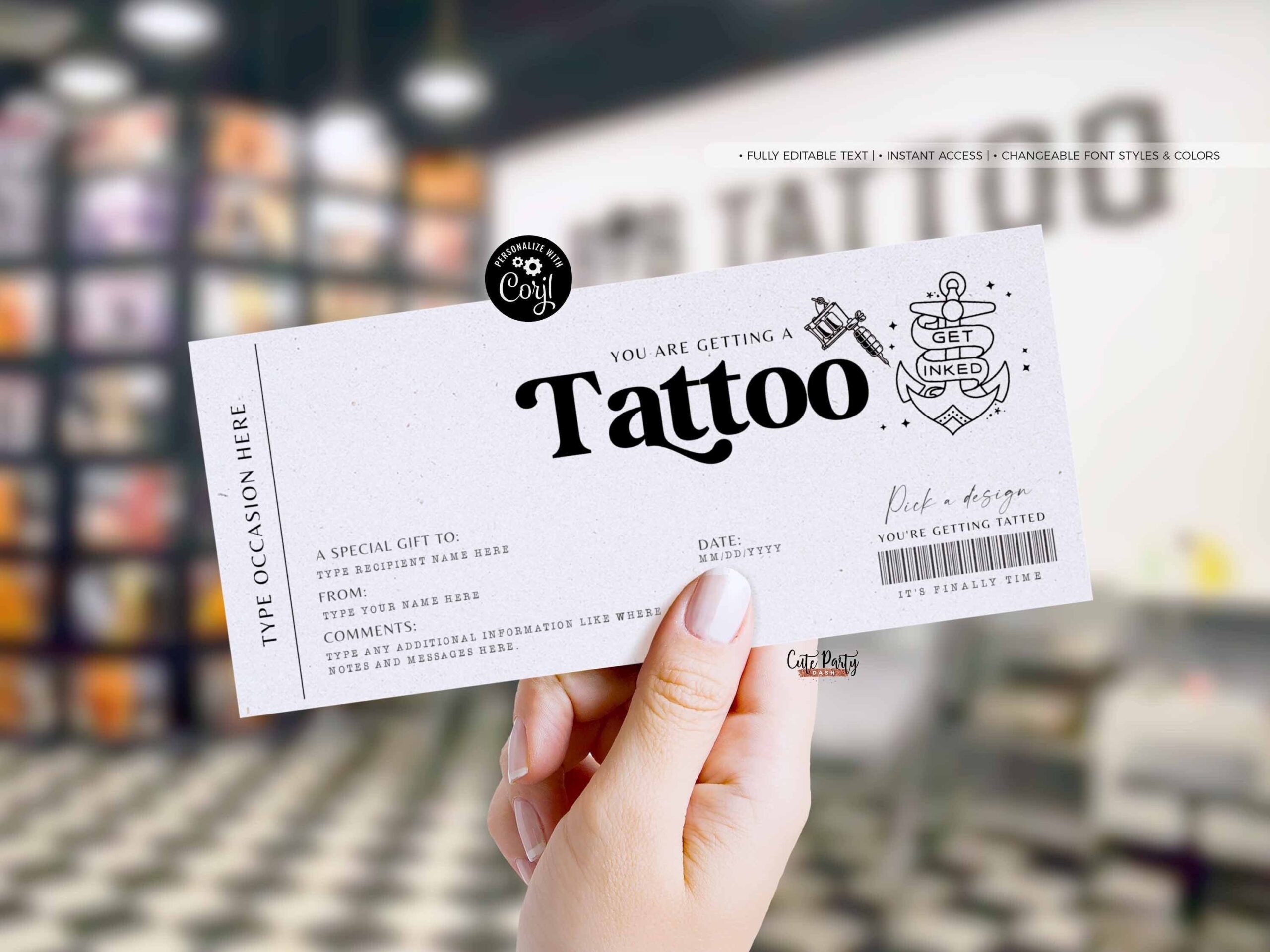 Tattoo Voucher Template Printable File My Party Design