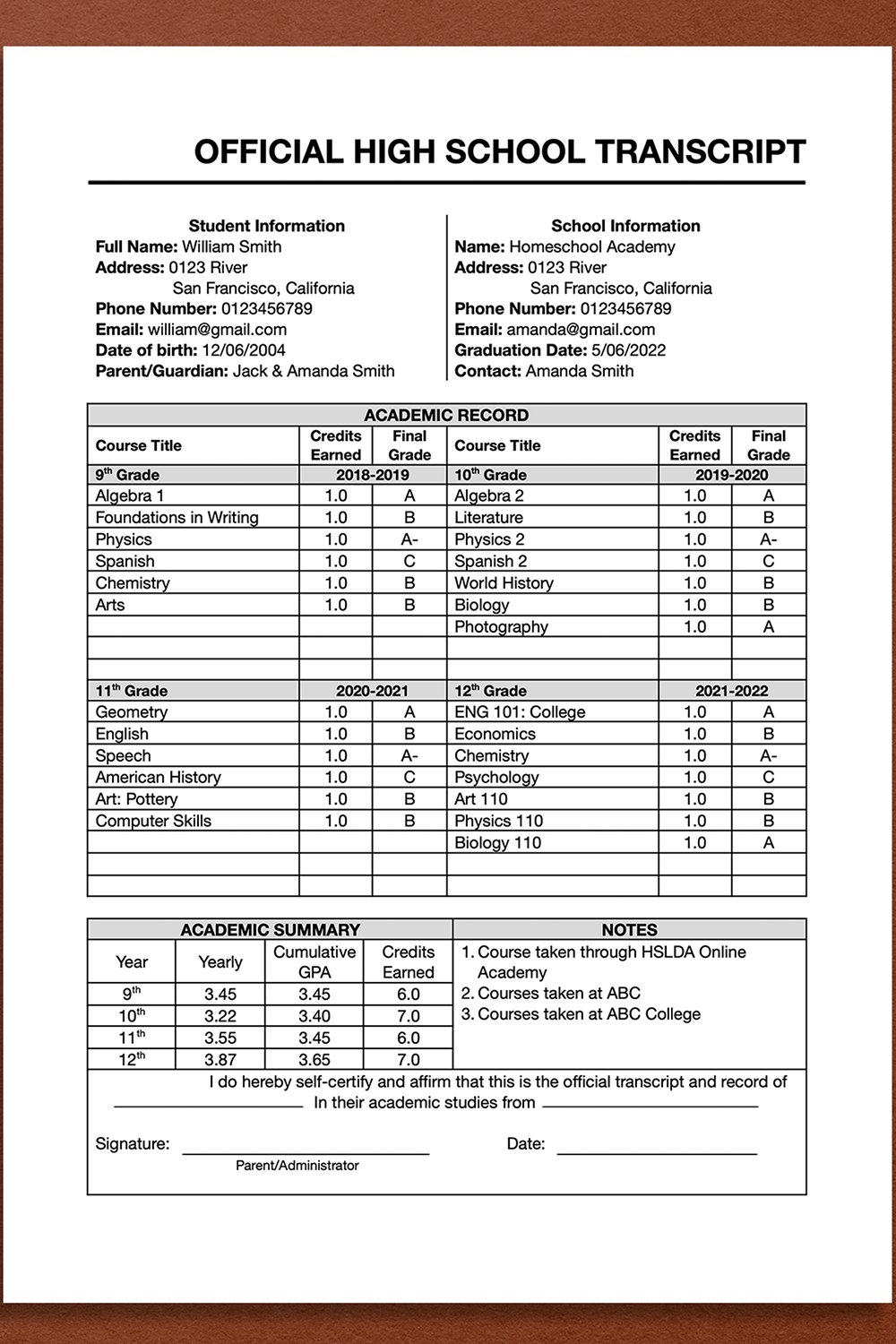 High School Transcript Template Google Docs Editable High School Transcript Template Fillable PDF DIY Homeschool High School Transcript Etsy