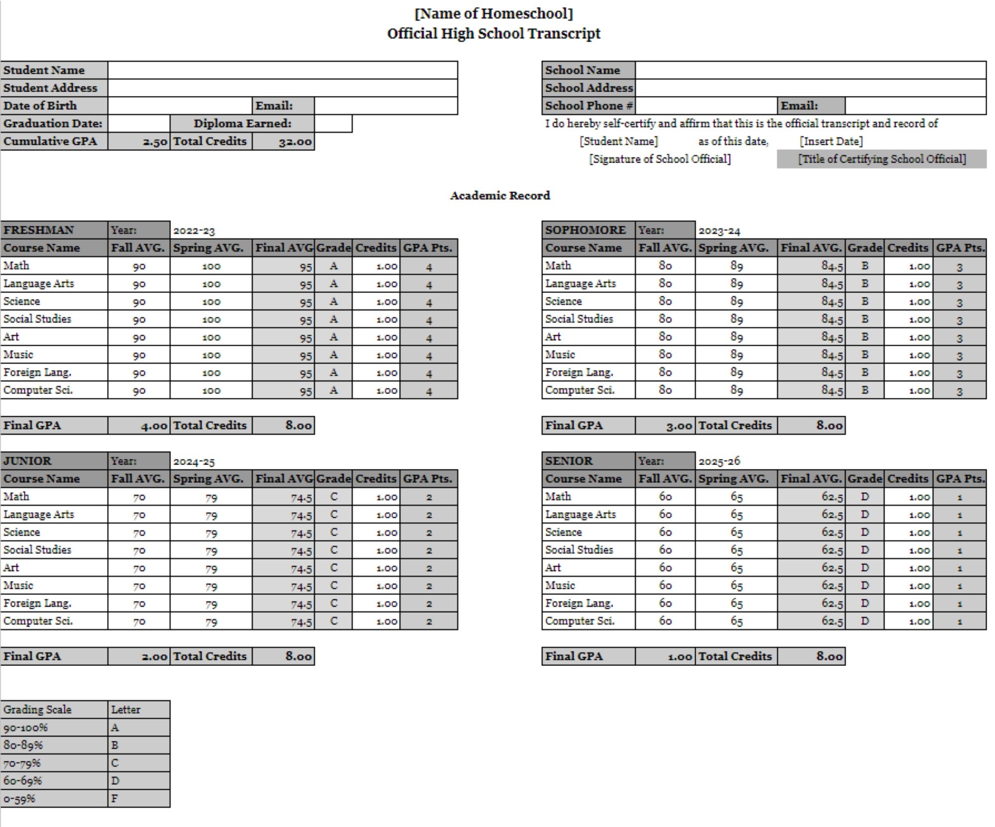 High School Transcript Template Fillable PDF Printable Homeschool Transcript Template PDF Fully Editable In Microsoft Word Or Google Docs Etsy