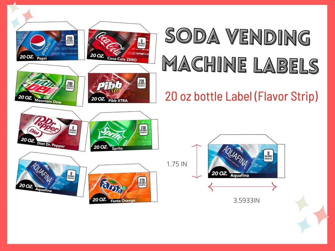 16 SODA VENDING MACHINE 12 Oz Can Label flavor Strip Vending Machine Drink Tabs Soda Labels For Vending Machines 1 75 X 3 5 Tabs Etsy