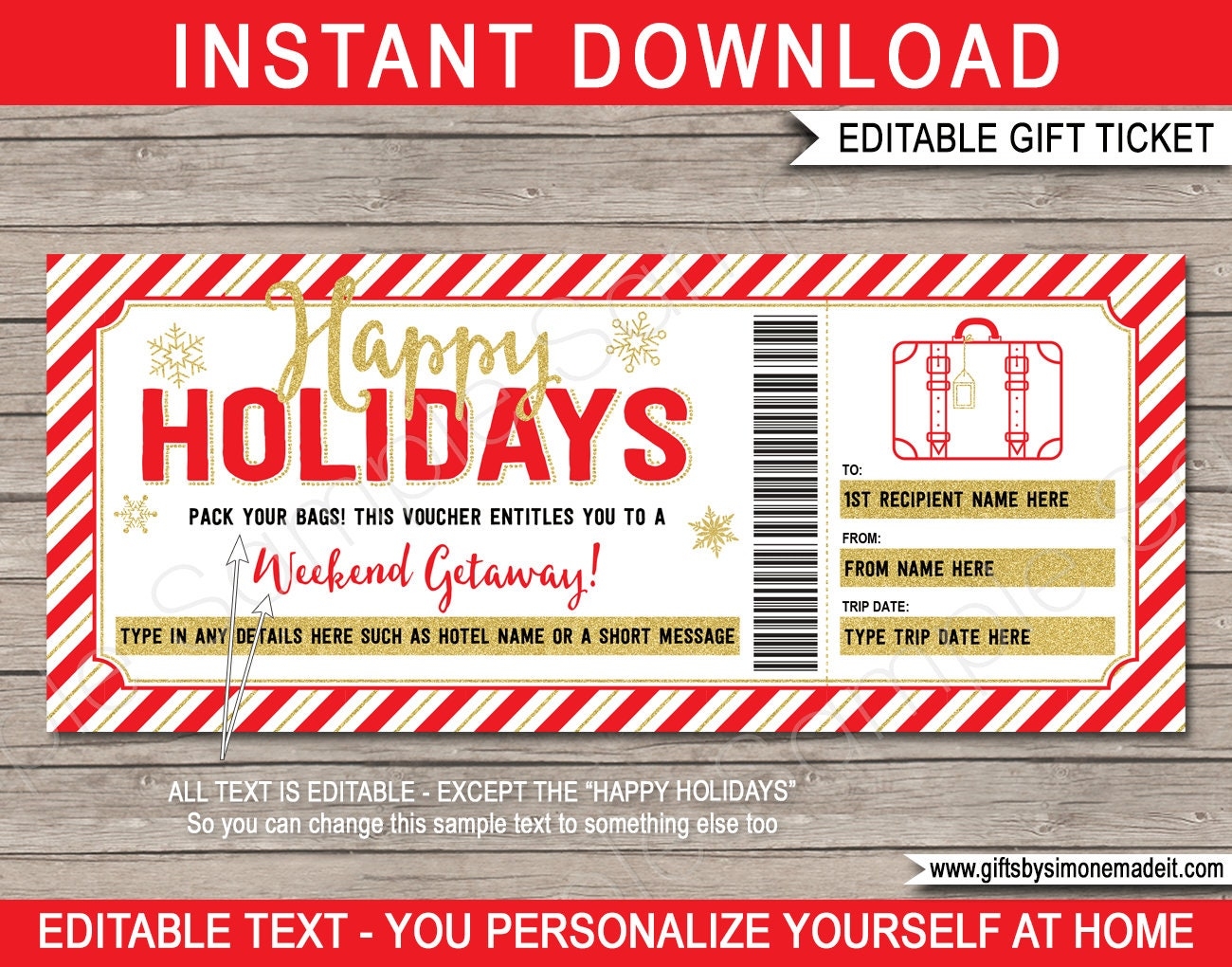 Hotel Voucher Template Weekend Away Getaway Holiday Trip Stay Reservation Gift Certificate Pack Your Bags INSTANT DOWNLOAD Etsy UK