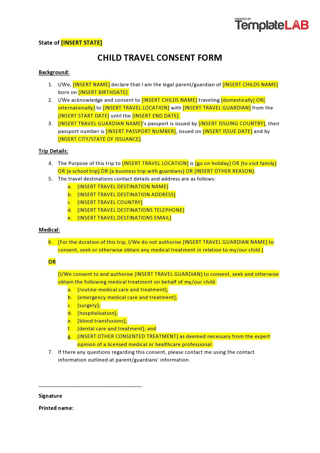 45 Printable Child Travel Consent Forms Word U0026 PDF