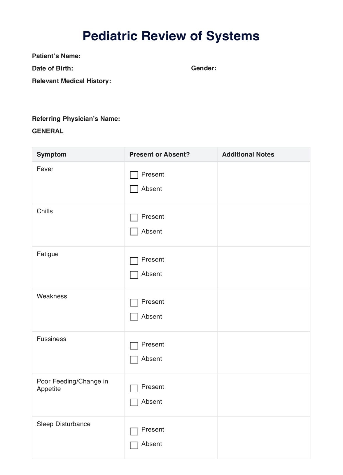 Pediatric Review Of Systems Template U0026 Example Free PDF Download
