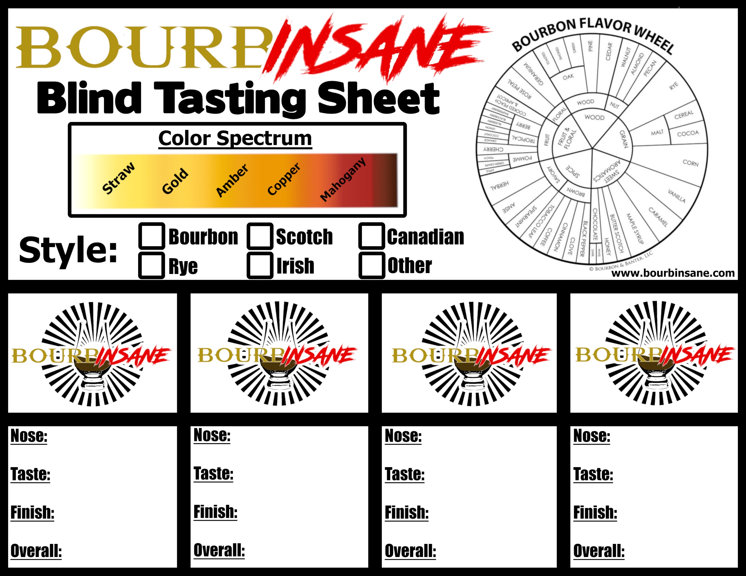 Bourbinsane Whiskey Tasting Sheet Bourbinsane