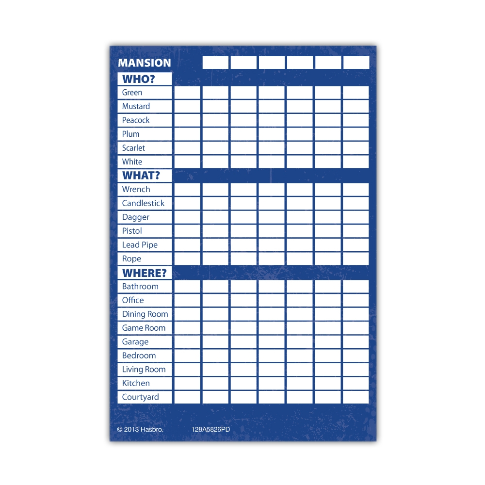 Hasbro Clue Sheets Printable