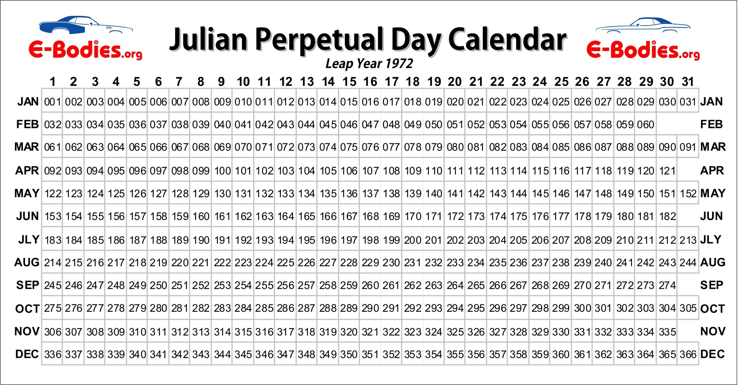 Free Printable Julian Date Calendars For 2025 PDF Templates