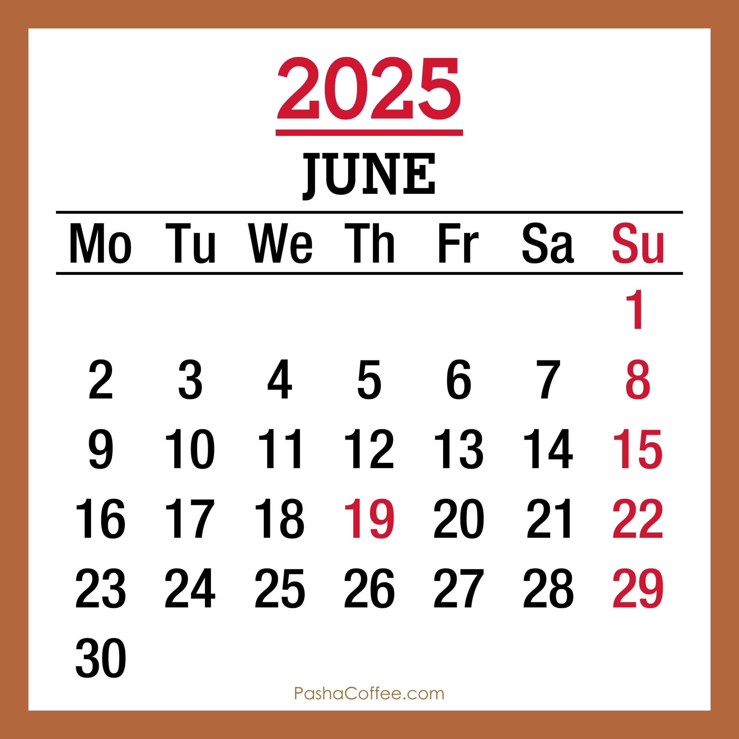 June 2025 Monthly Calendar With Holidays Printable Free Beige Monday Start PashaCoffee