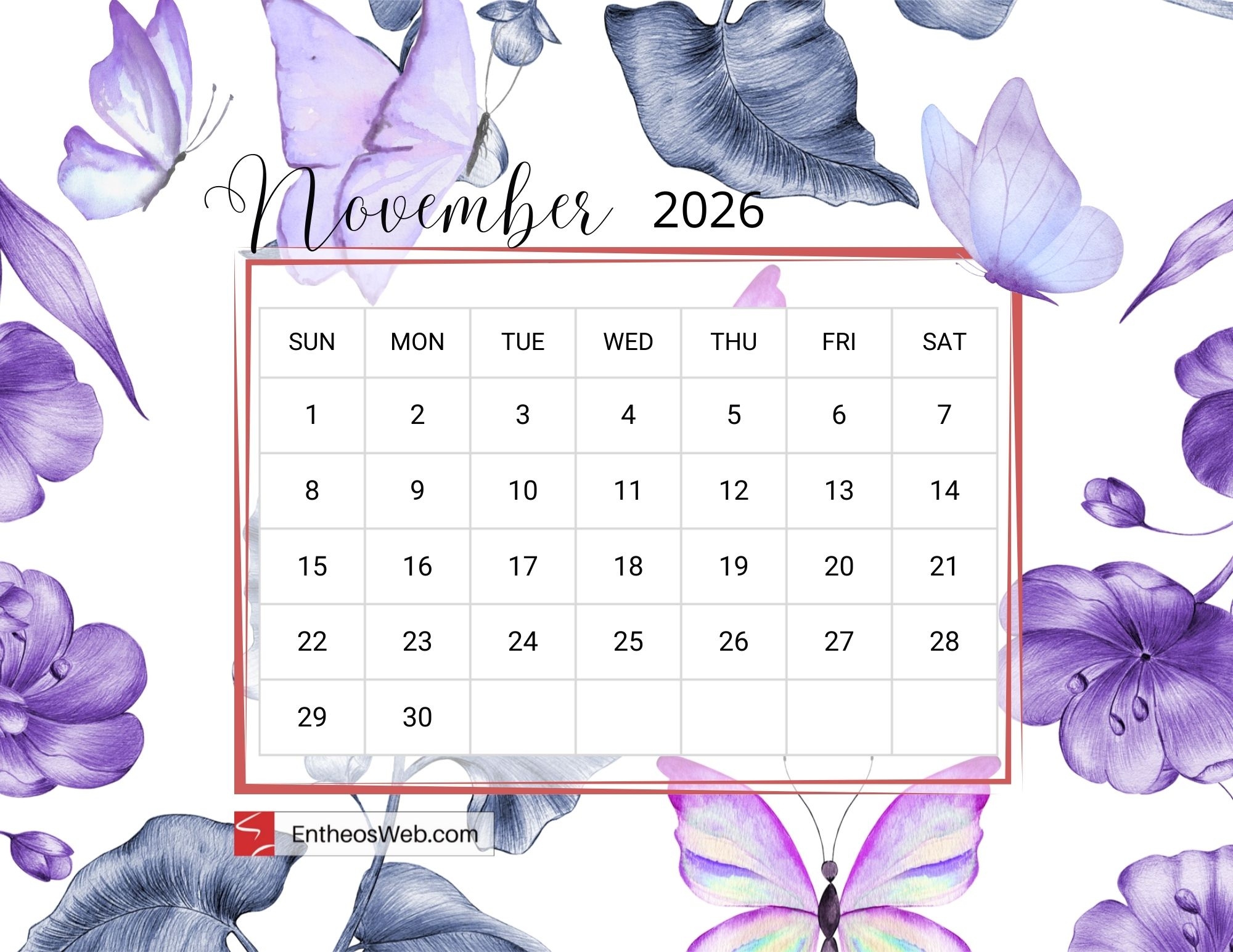 Free Printable November 2026 Calendars EntheosWeb