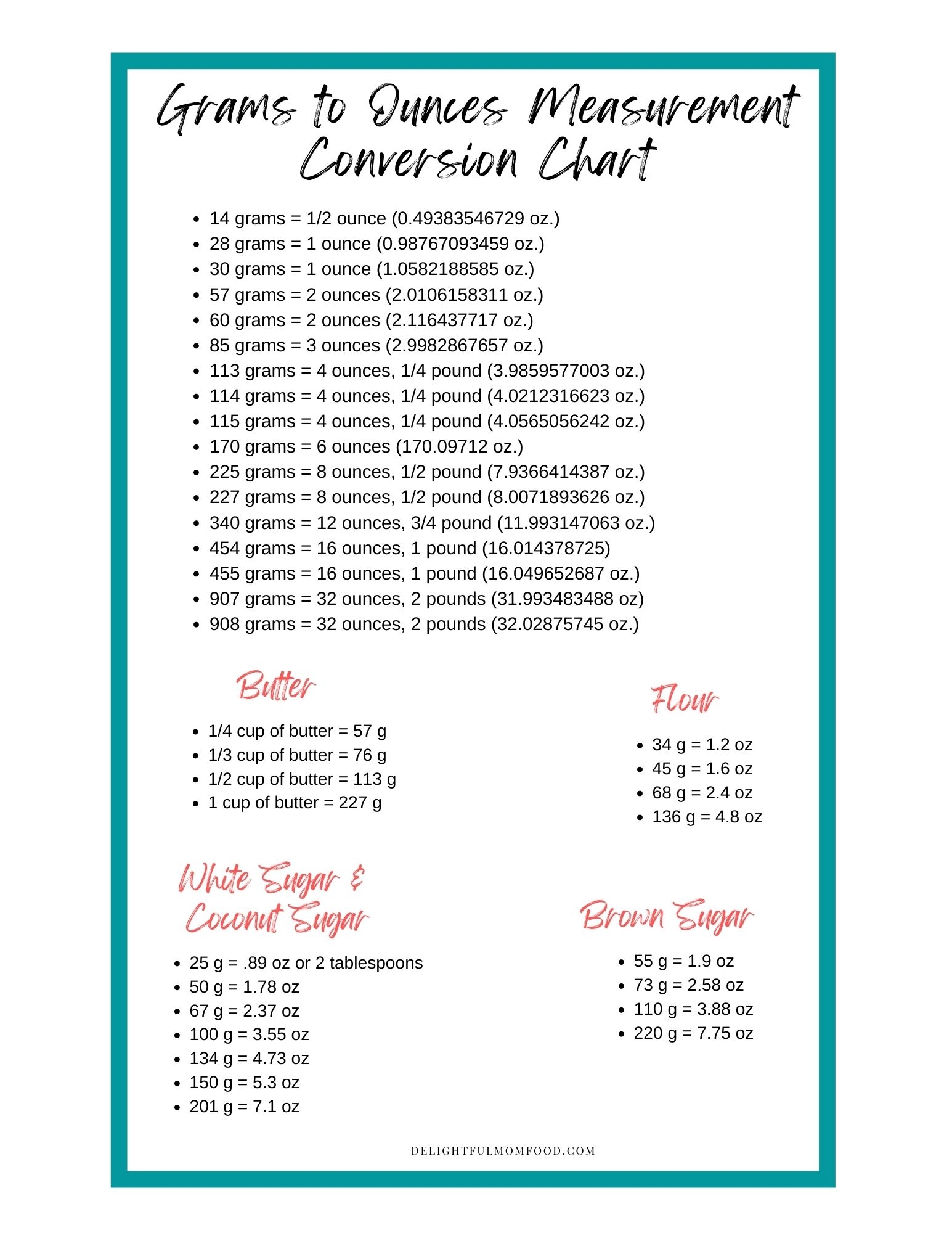 How Many Grams In An Ounce Delightful Mom Food