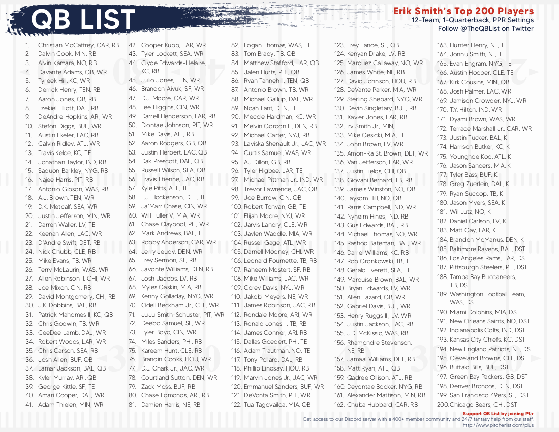 QB List Fantasy Football Cheat Sheet 8 20 Update QB List