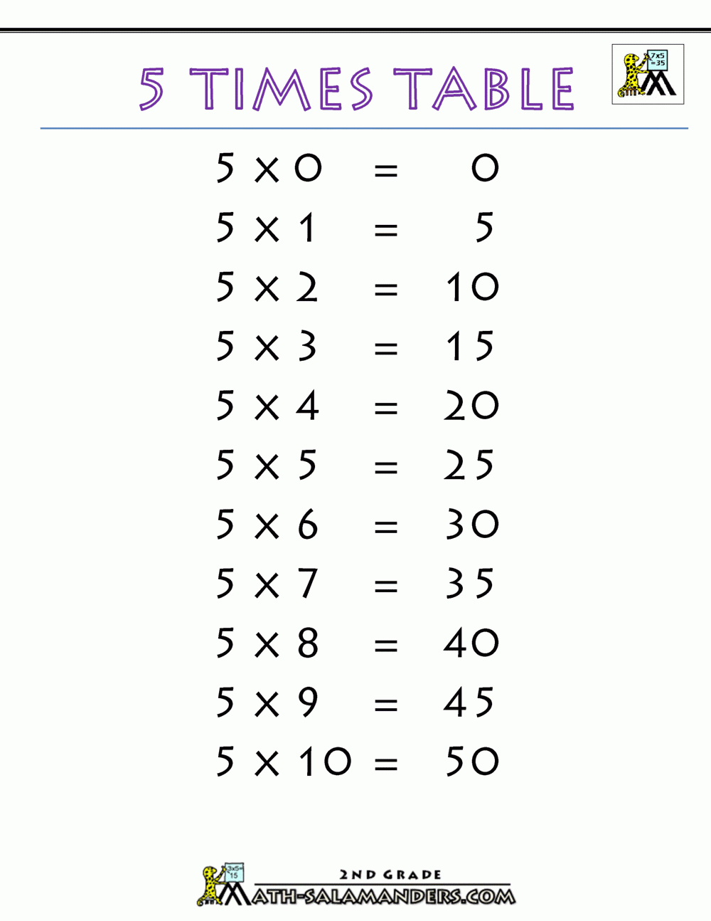 5 Times Table
