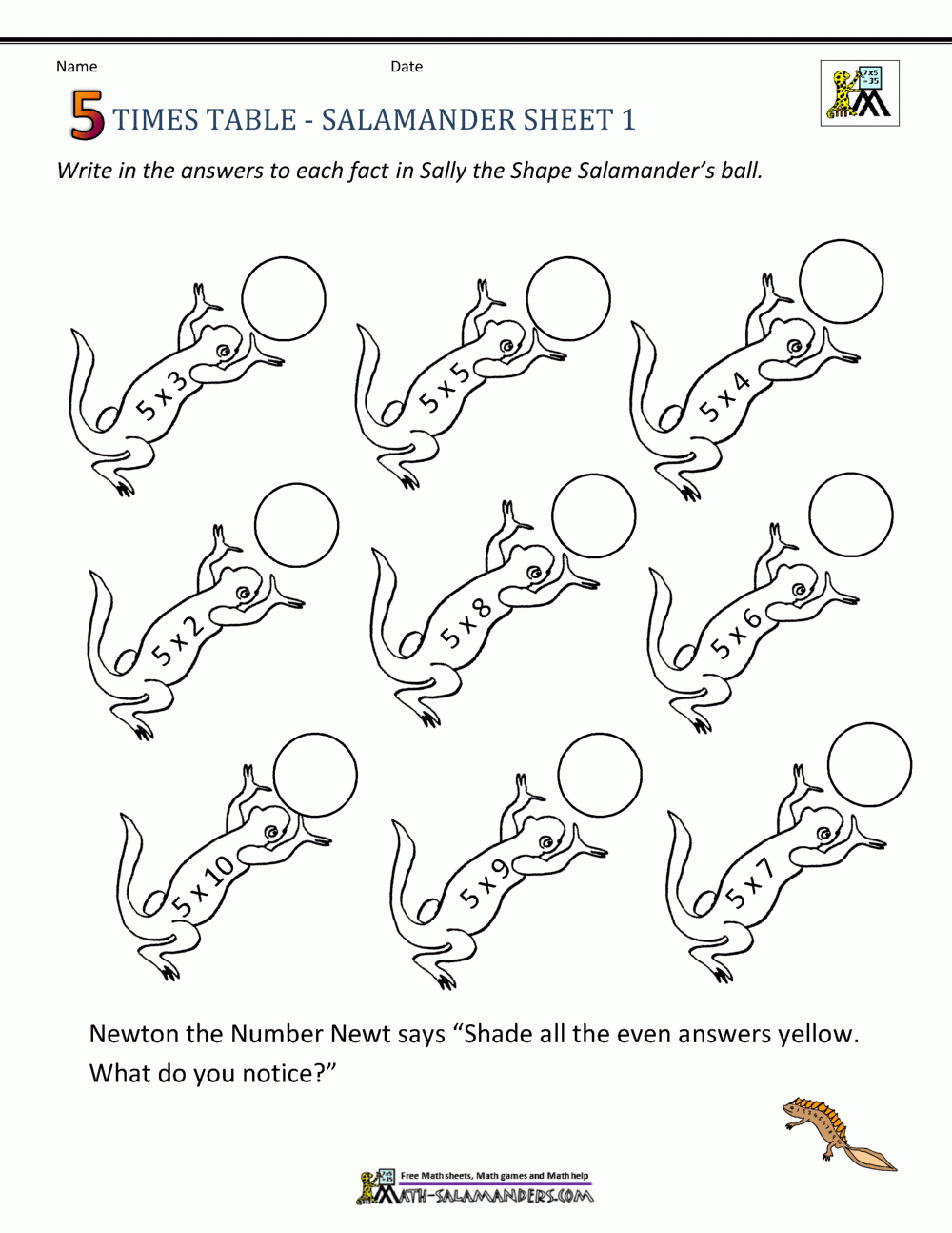 5 Times Table Worksheet Page