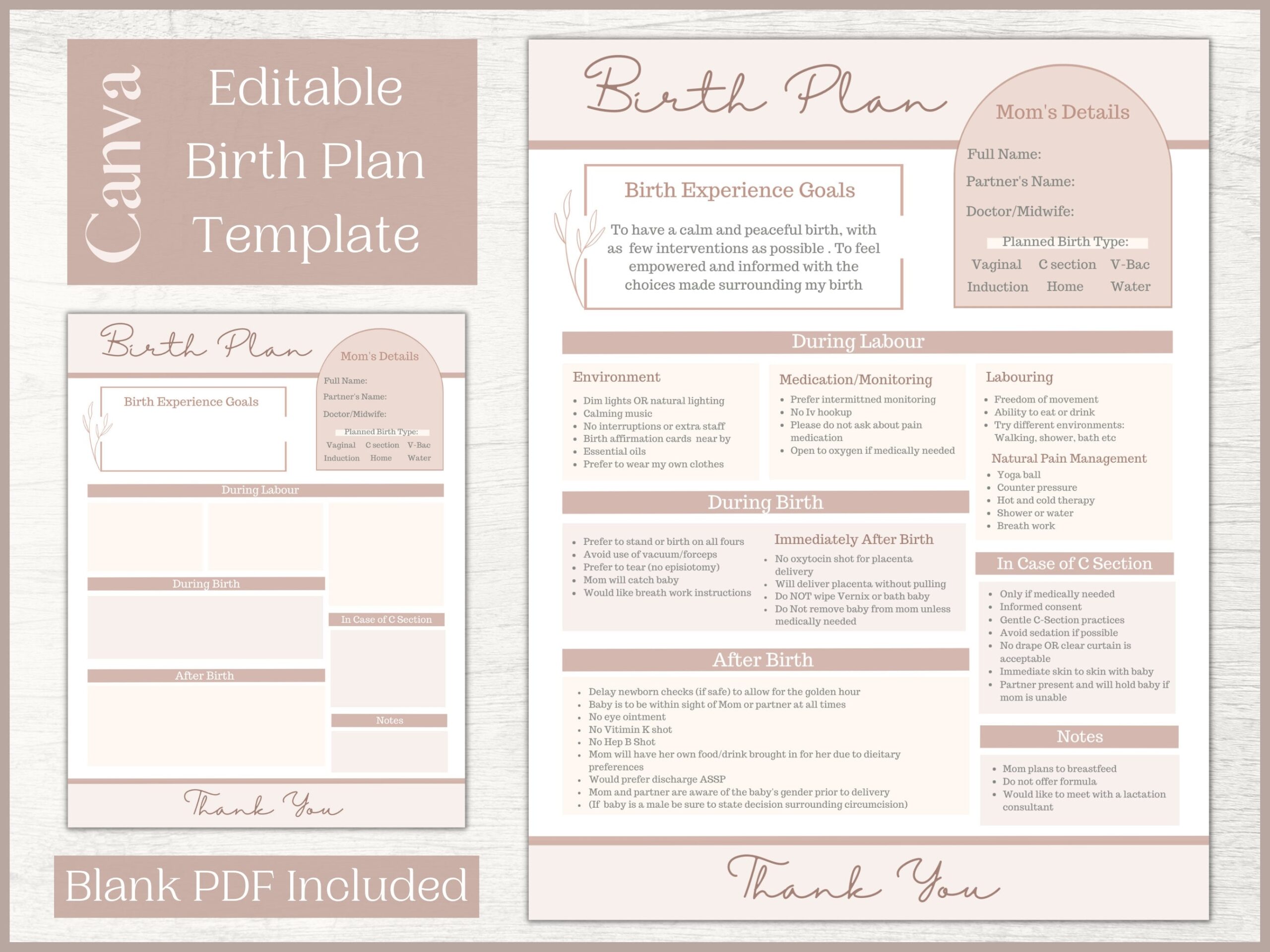 Editable Birth Plan Template Printable Birthing Plan Labour And Delivery Preferences Template Etsy