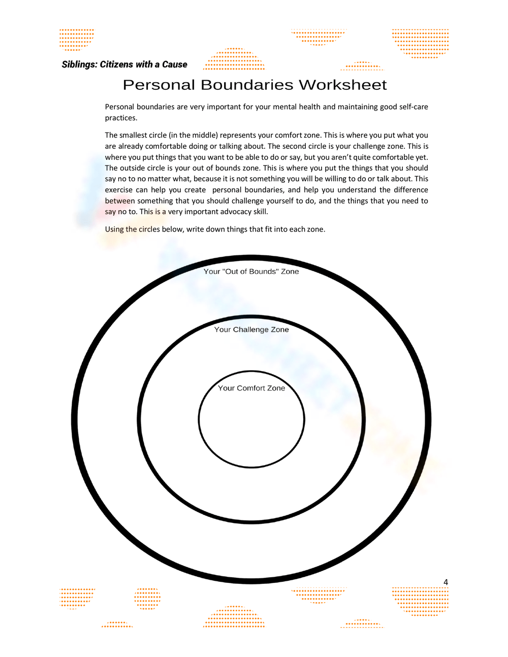 Printable Boundaries Circle Worksheet