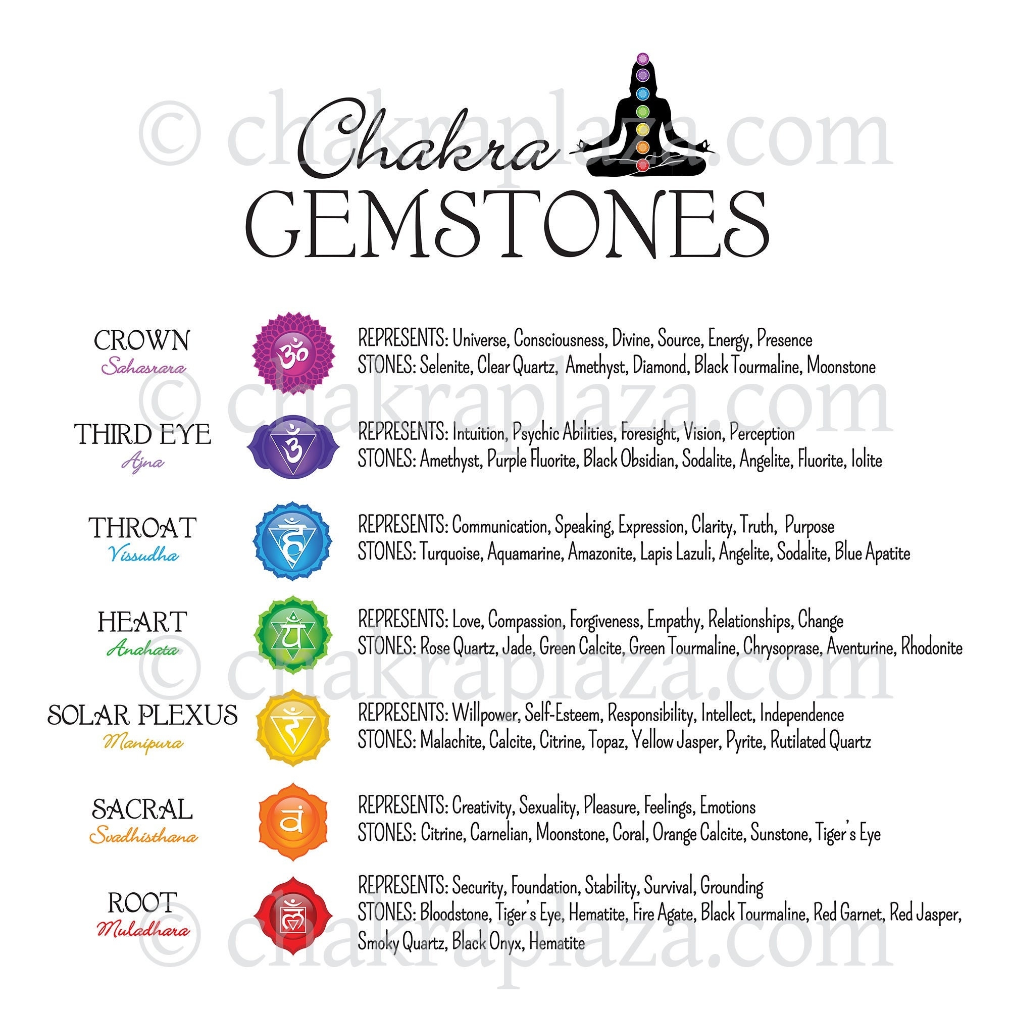 Chakra Crystals Chart Chakra Stones Print Gemstones Reference Guide Digital Download Small Poster US Letter Size Etsy