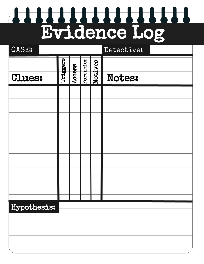 Printable Evidence Log Sheet