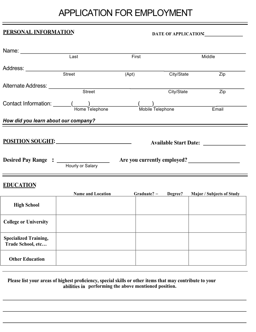 27 Basic Employment Application Templates Free