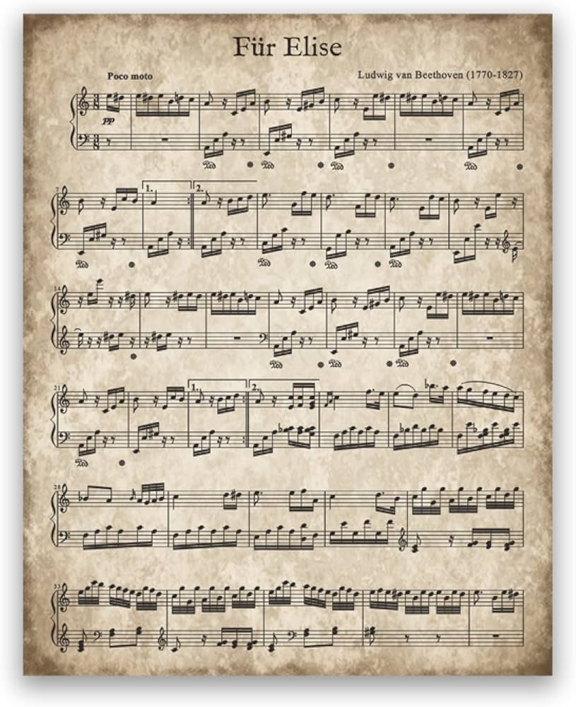 Fur Elise Vintage Sheet Music Poster Beethoven Classic Piano Music Print Christmas Song Decor Canvas Painting Picture 40 X 50 Cm 16 X 20 Inch No Frame Amazon de Home Kitchen