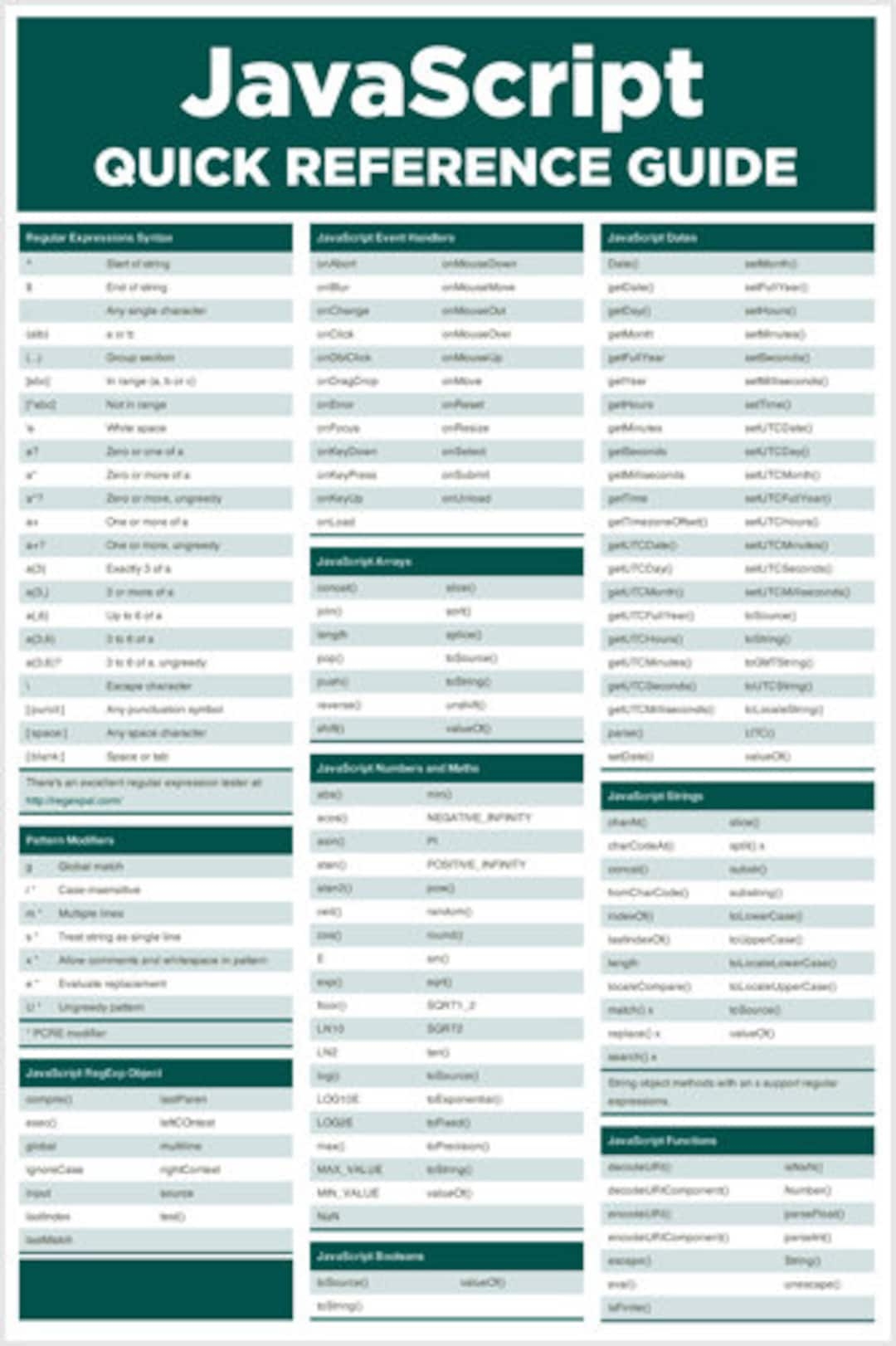 Javascript Quick Reference Poster Computer Programming Cheat Sheet Educational Aid Etsy