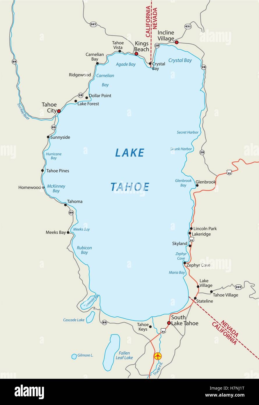 Lake Tahoe Map Stock Vector Image Art Alamy