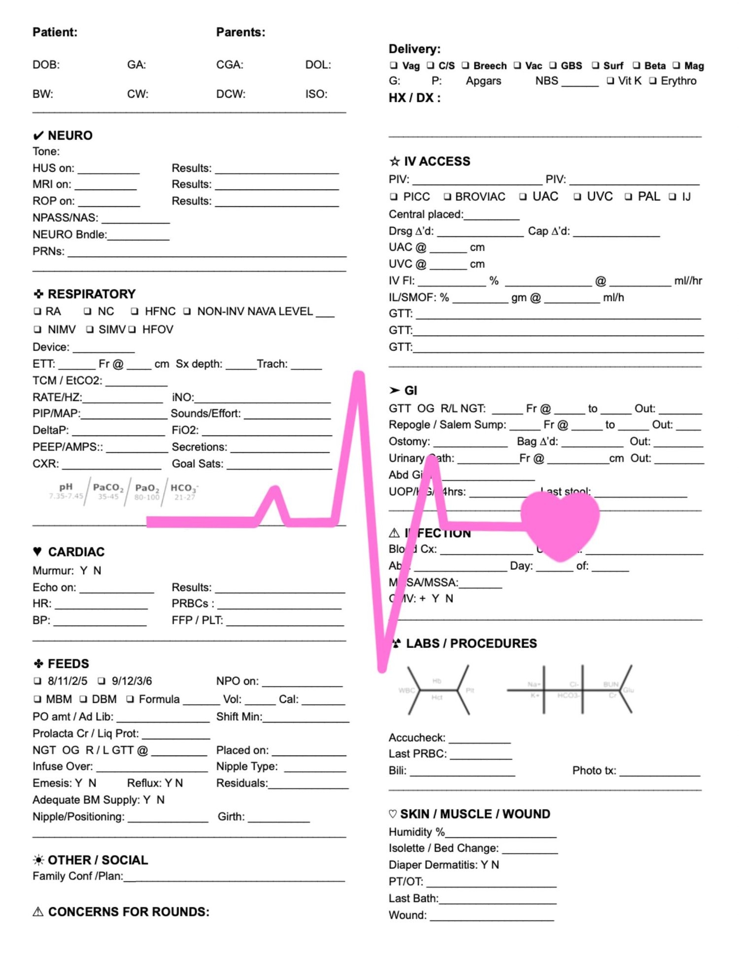 Printable NICU Report Sheet Template