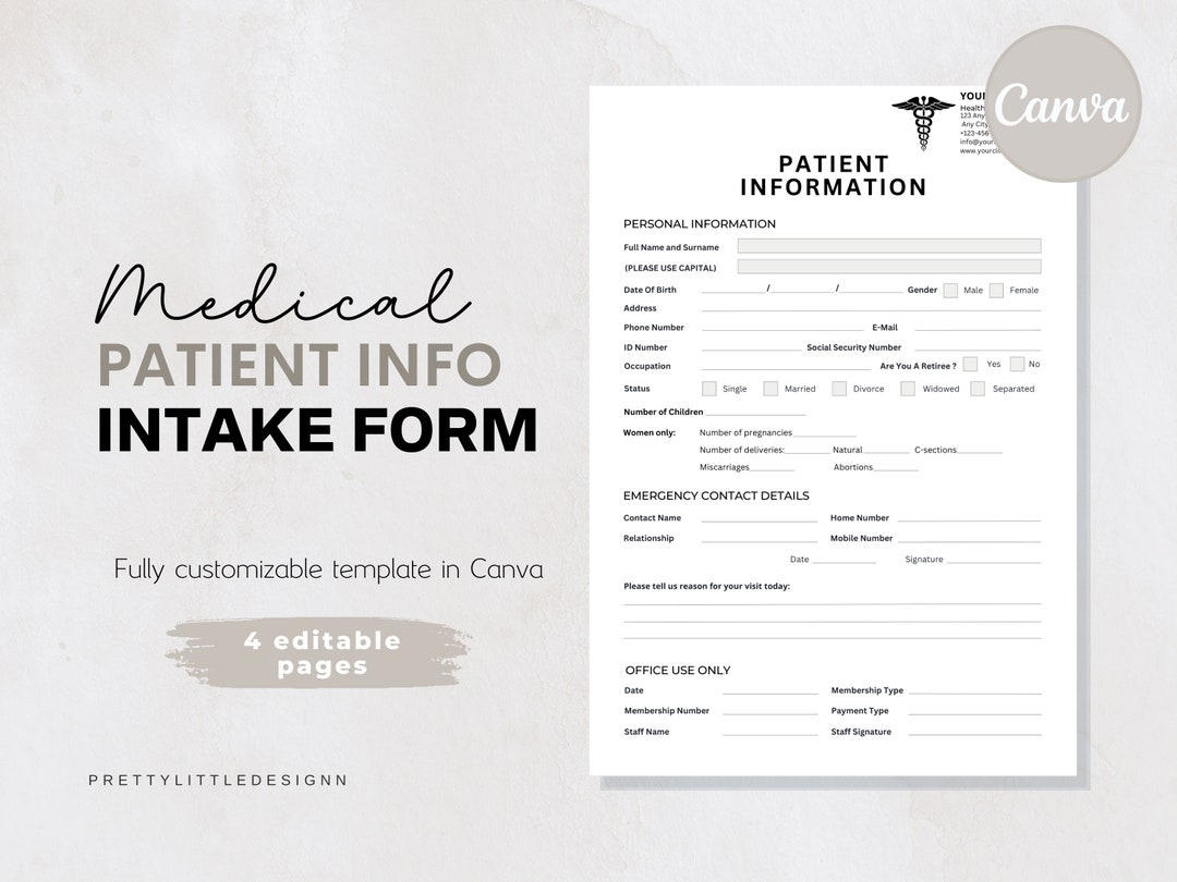 New Patient Form Patient Information Medical History Printable Patient Form Dentist Office Medical Clinic Form Digital Download Etsy