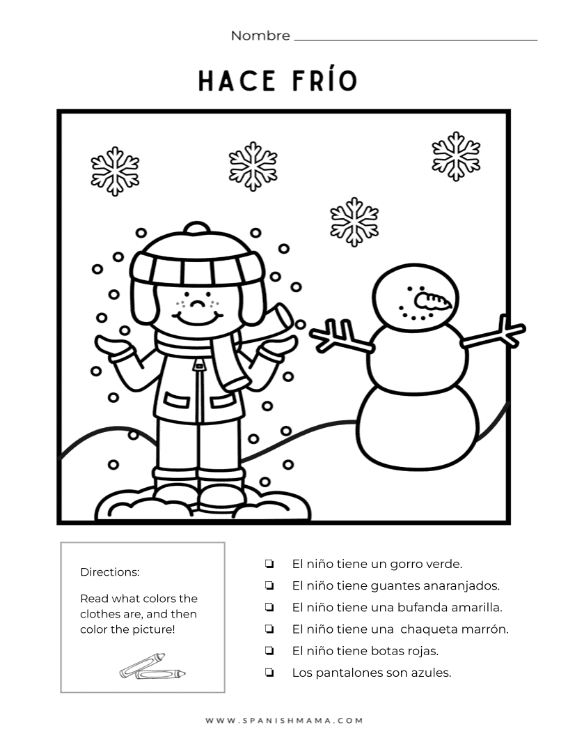 Printable Winter Coloring Sheets With Spanish Vocabulary For Kids Tierra Encantada