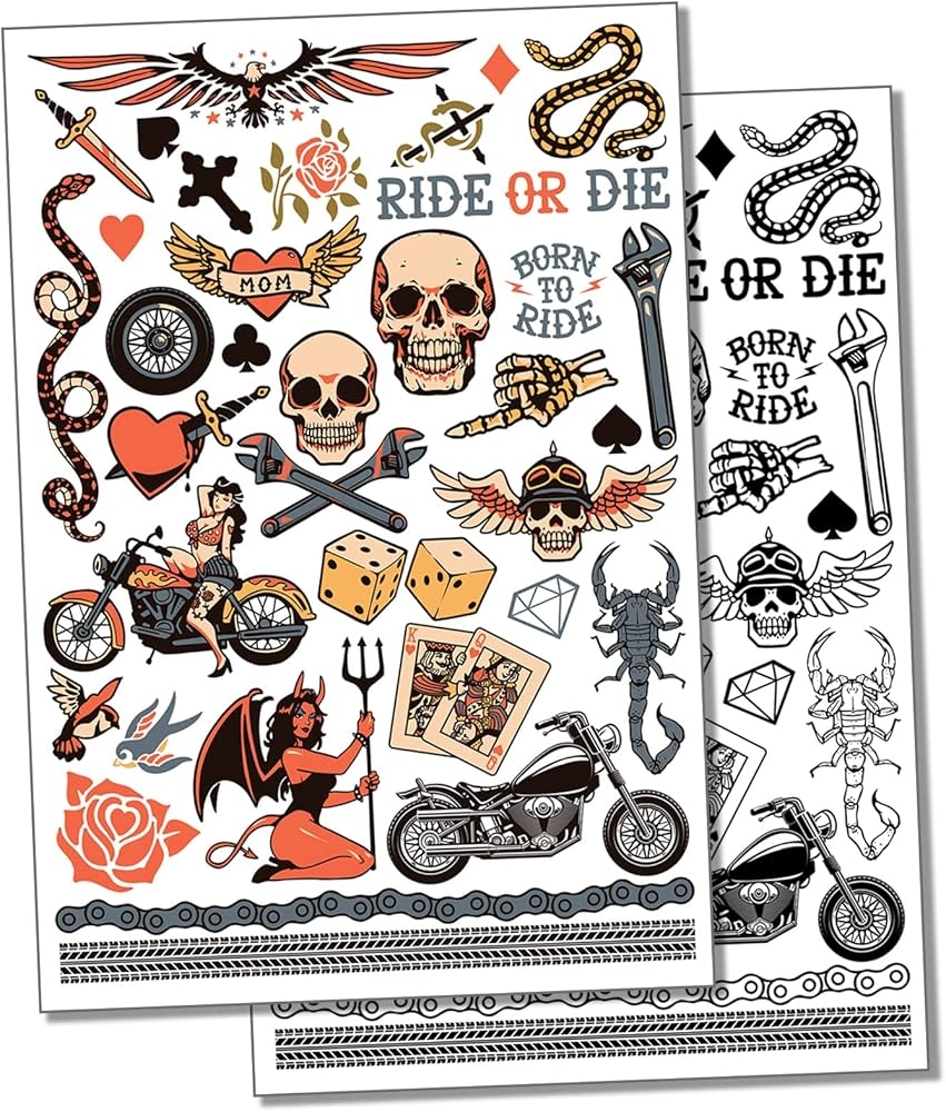 Amazon Biker Skulls Motorcycle Club Temporary Tattoo Water Resistant Fake Body Art Set Collection Color One Sheet Beauty Personal Care